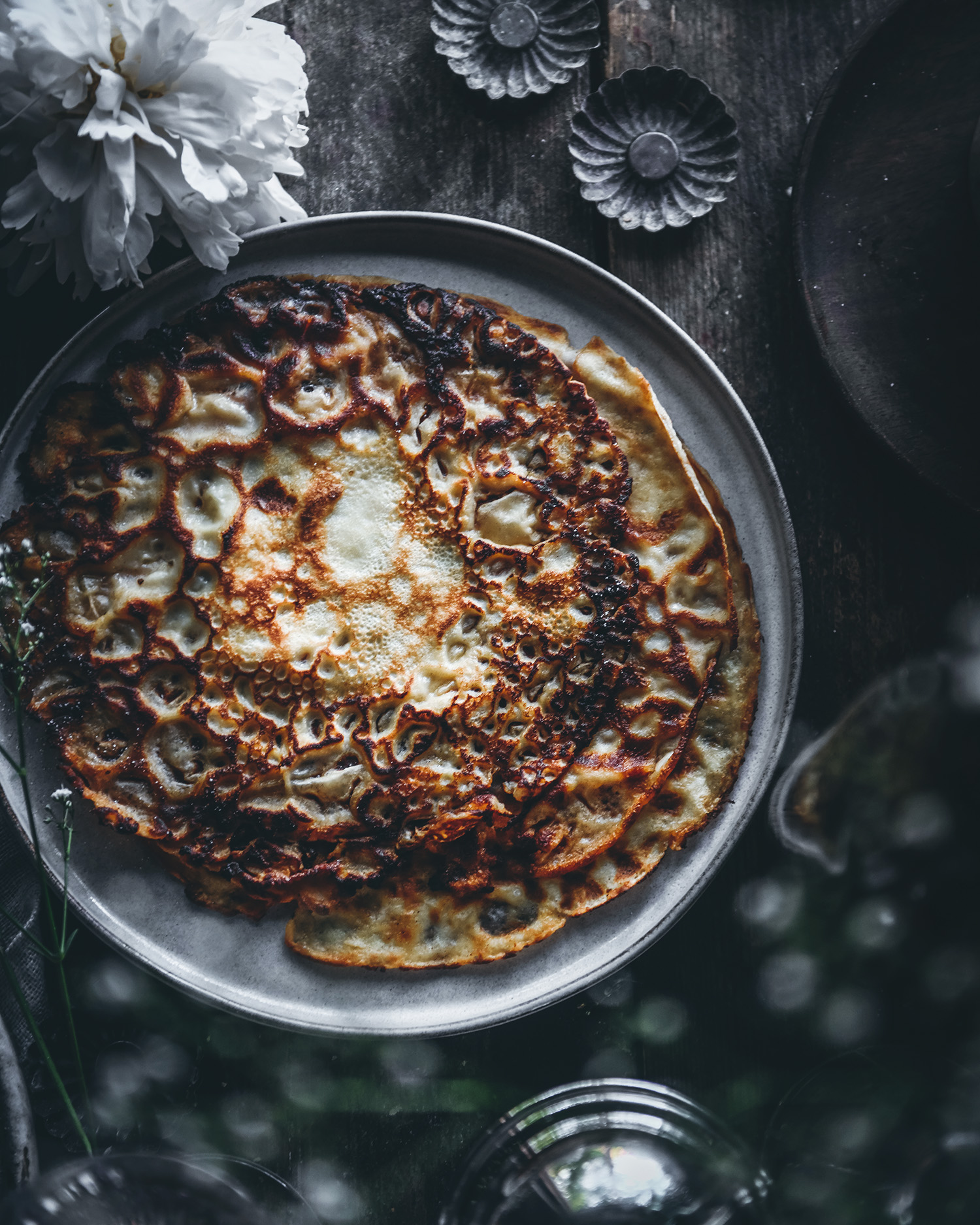 There’s a dessert that belongs to my every summer. These crêpe like Finnish pancakes are something my grandmother used to do every single summer at the cottage, especially when I was still a little girl. Those were the best dinners when I knew there was a crêpe batter waiting in the kitchen. Always enjoyed with sugar and strawberry jam or fresh strawberries. So finally, I wrote this recipe down for myself and made these for my family some weeks ago. Oh wow, how good freshly made crêpes can taste!